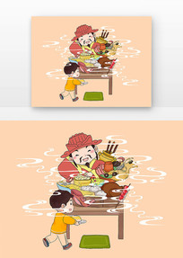 新年小年节日金红喜气插画地产海报