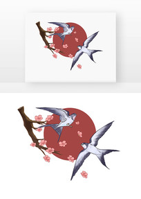当前位置:素材网站>免抠元素>卡通手绘>国潮立春燕子和桃花粉红色桃花花枝飞燕