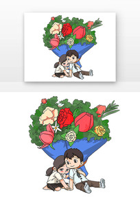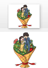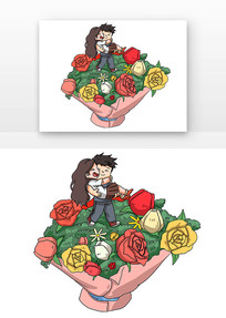 在花束求婚的情侣人物卡通