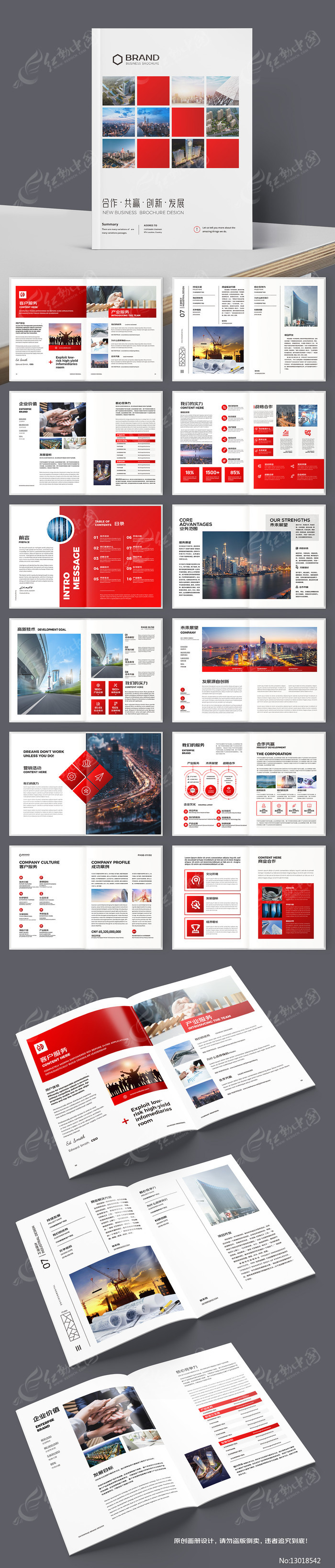 红动中国提供原创整套企业宣传册模板下载,作品以企业为主题而设计,可作为红色企业画册,产品宣传册,企业宣传册,产品画册,公司画册等主题图片使用,整套企业宣传册模板,编号13018542,格式AI,尺寸210x285毫米,大小61.72 MB,欢迎会员进行下载。
