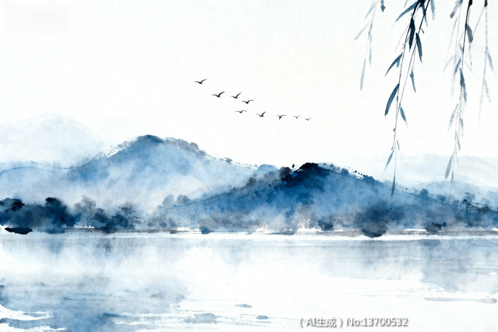 当前位置:首页>AI图库>风景图片>山峰山脉>水墨山水画远山近水飞鸟柳枝水墨山水画远山近水飞鸟柳枝