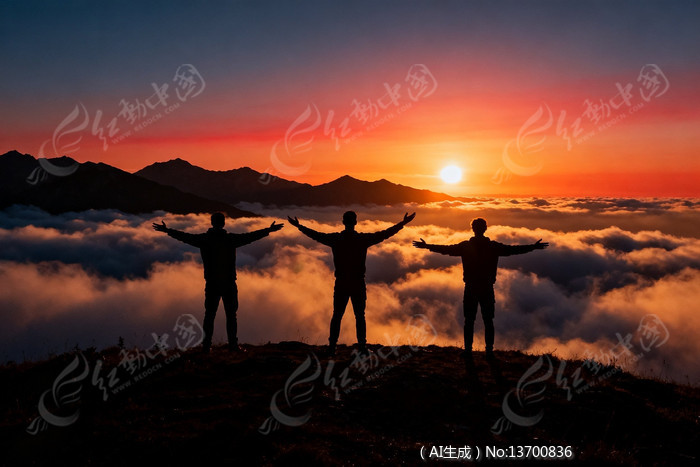 当前位置:首页>AI图库>人物图片>人物场景>三人剪影于云海之上迎接朝阳三人剪影于云海之上迎接朝阳