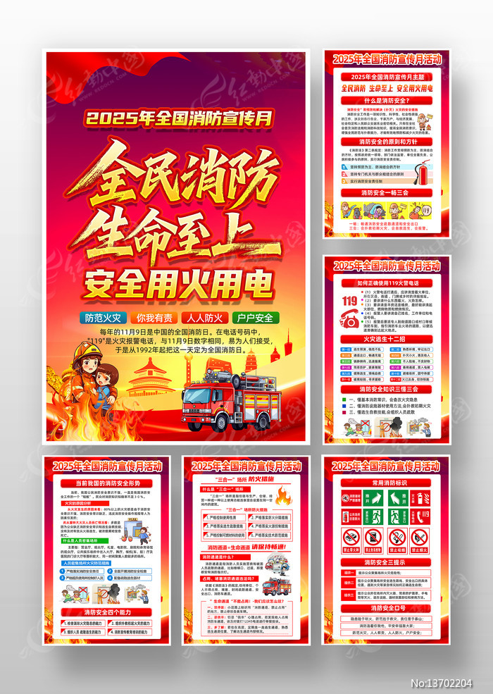红动中国提供原创2025年全国消防宣传月119消防日挂图下载,作品以安全用火用电为主题而设计,可作为2025年消防月,安全用火用电,全国消防日,消防日展板,消防月宣传等主题图片使用,2025年全国消防宣传月119消防日挂图,编号13702204,格式PSD,尺寸300x450毫米,大小68.63 MB,欢迎会员进行下载。