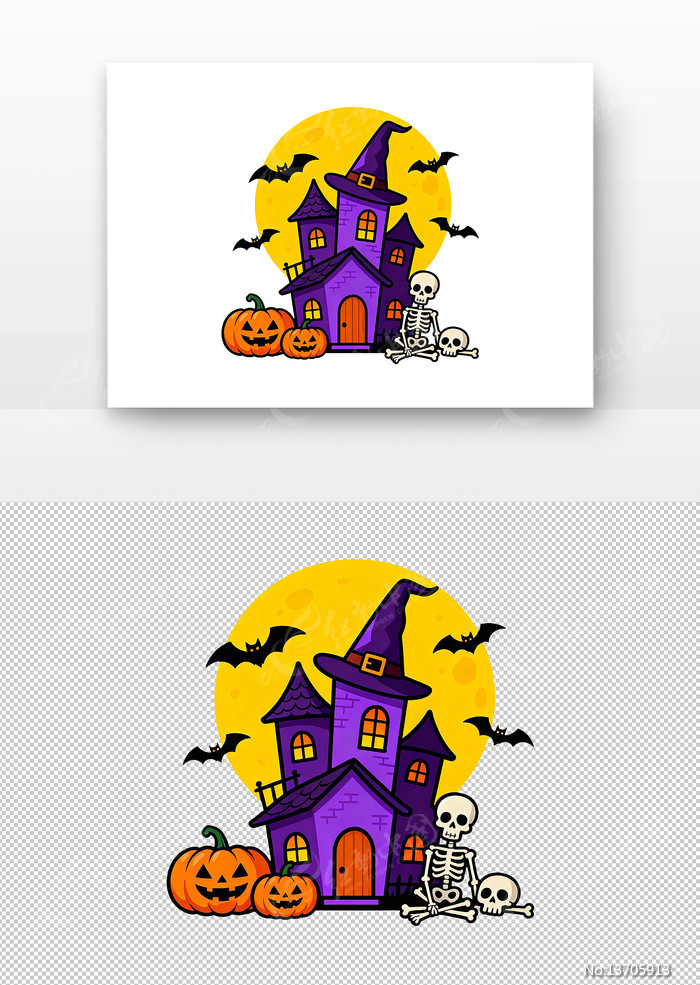 当前位置:素材网站>免抠元素>卡通手绘>紫色女巫房与万圣节元素插画