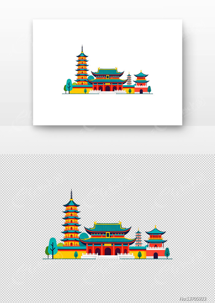 当前位置:素材网站>免抠元素>卡通手绘>中式古建筑插画塔楼与殿堂