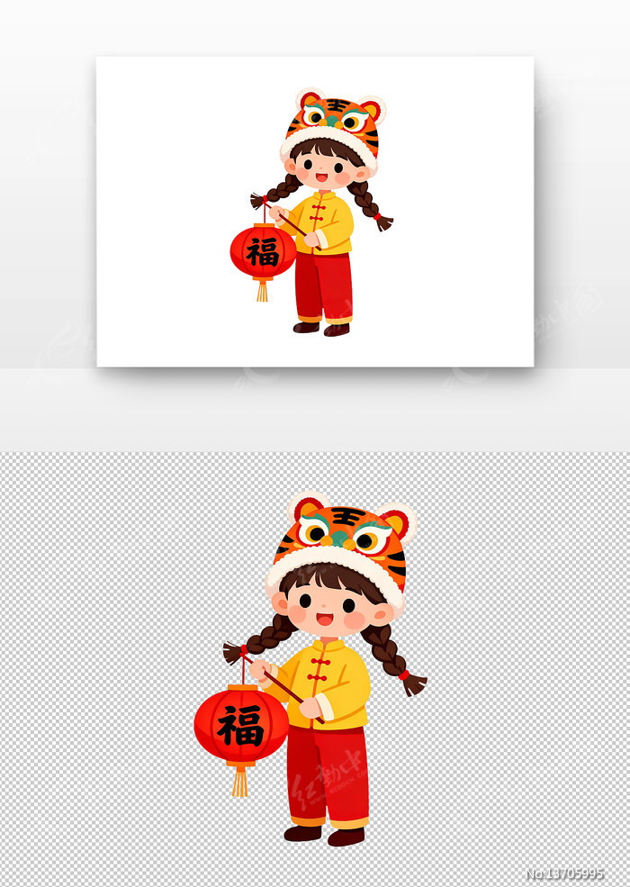 当前位置:素材网站>免抠元素>节日元素>小女孩持红灯笼头戴虎头帽喜迎佳节