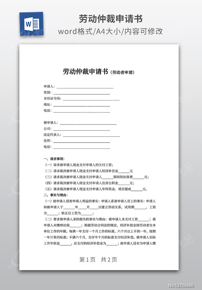 当前位置:素材网站>办公文档>WORD>合同范本>劳动仲裁申请书劳动仲裁申请书