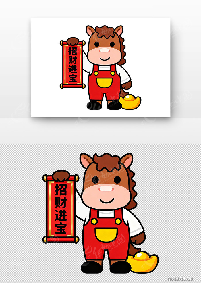 当前位置:素材网站>免抠元素>卡通手绘>马年招财进宝卡通马形象