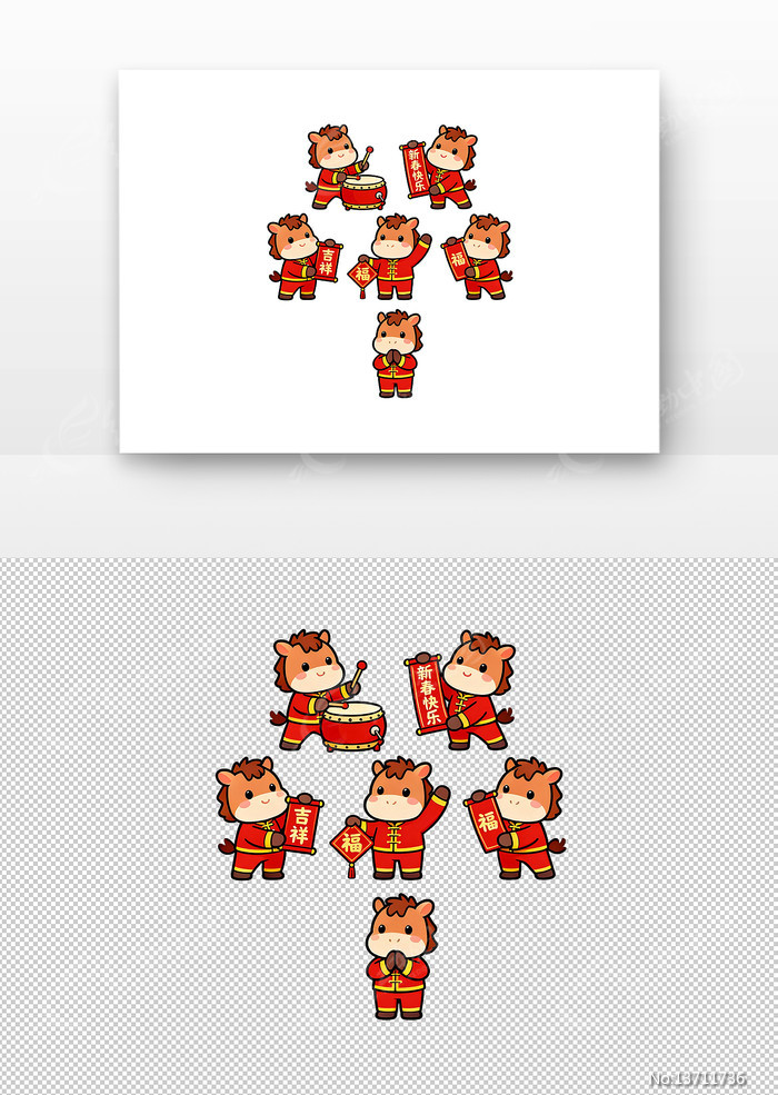 当前位置:素材网站>免抠元素>卡通手绘>六只卡通小马贺新春元素