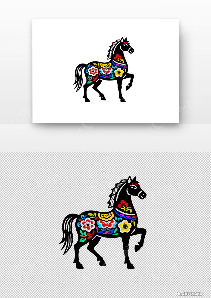 当前位置:素材网站>免抠元素>卡通手绘>黑色剪纸马图案