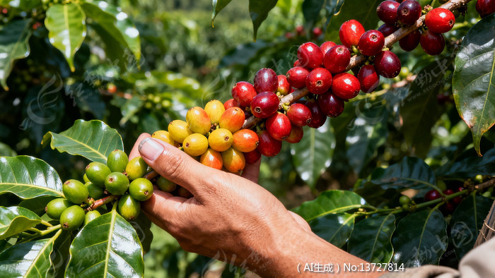 当前位置:首页>AI图库>食物食材>水果蔬菜>一串即将成熟的咖啡果一串即将成熟的咖啡果