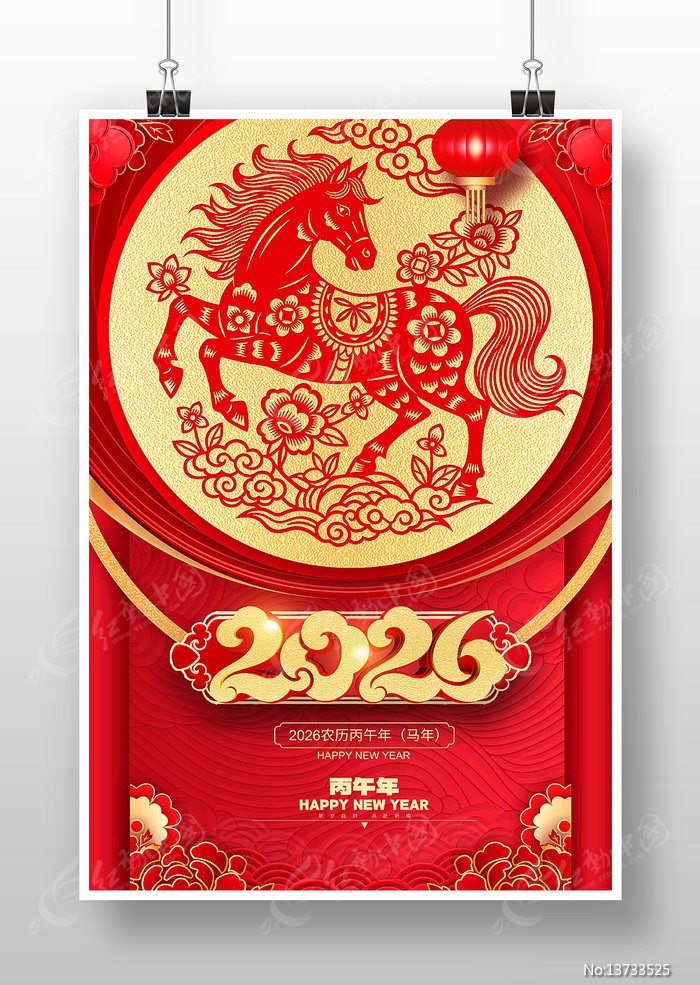 红动中国提供原创马年剪纸2026年马年春节海报下载,作品以马年为主题而设计,可作为2026马年,2026晚会,春节背景,春节海报,春节晚会等主题图片使用,马年剪纸2026年马年春节海报,编号13733525,格式PSD,尺寸300x450毫米,大小84.26 MB,欢迎会员进行下载。