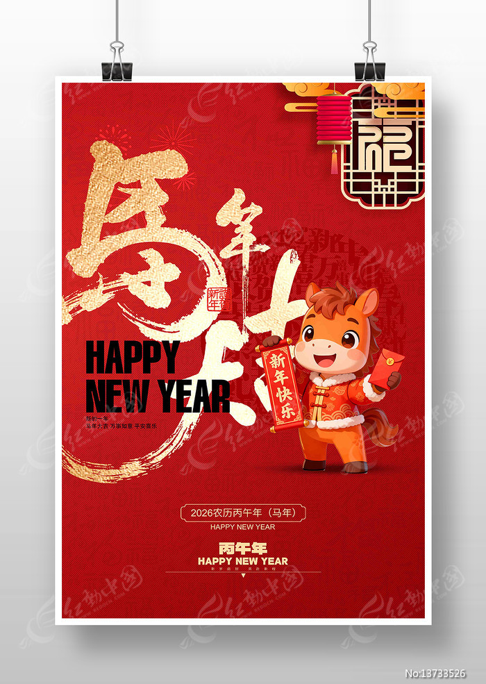 红动中国提供原创马年大吉2026年马年春节海报下载,作品以马年为主题而设计,可作为2026马年,2026晚会,春节背景,春节海报,春节晚会等主题图片使用,马年大吉2026年马年春节海报,编号13733526,格式PSD,尺寸300x450毫米,大小138.99 MB,欢迎会员进行下载。