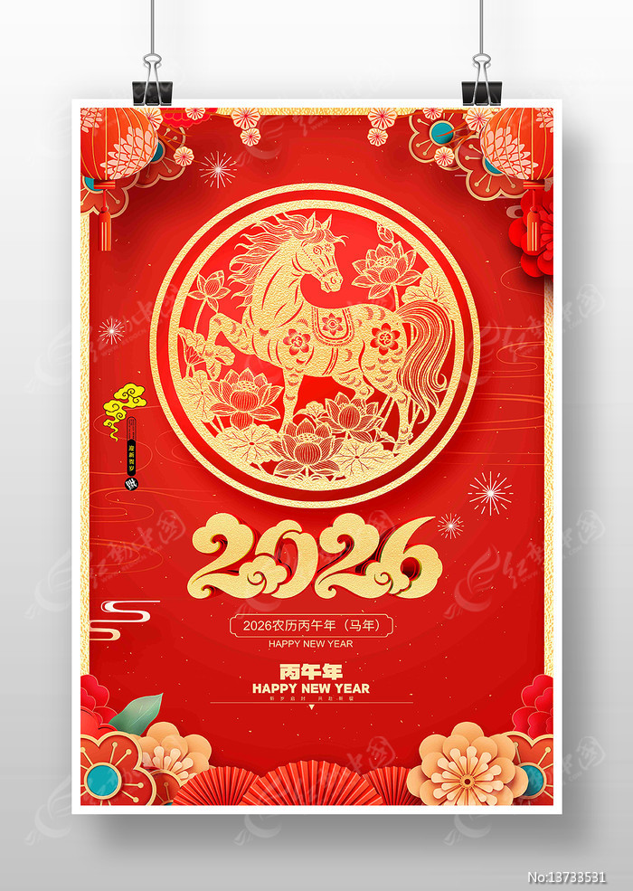 红动中国提供原创马年剪纸2026年马年春节海报下载,作品以马年为主题而设计,可作为2026马年,2026晚会,春节背景,春节海报,春节晚会等主题图片使用,马年剪纸2026年马年春节海报,编号13733531,格式PSD,尺寸300x450毫米,大小149.67 MB,欢迎会员进行下载。