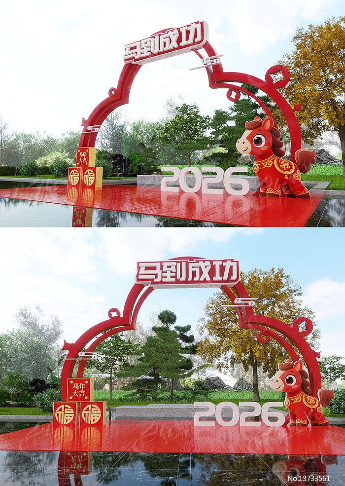 当前位置:设计网站>平面广告>陈列装饰>美陈>元旦龙门架2026年春节拱门元旦龙门架2026年春节拱门
