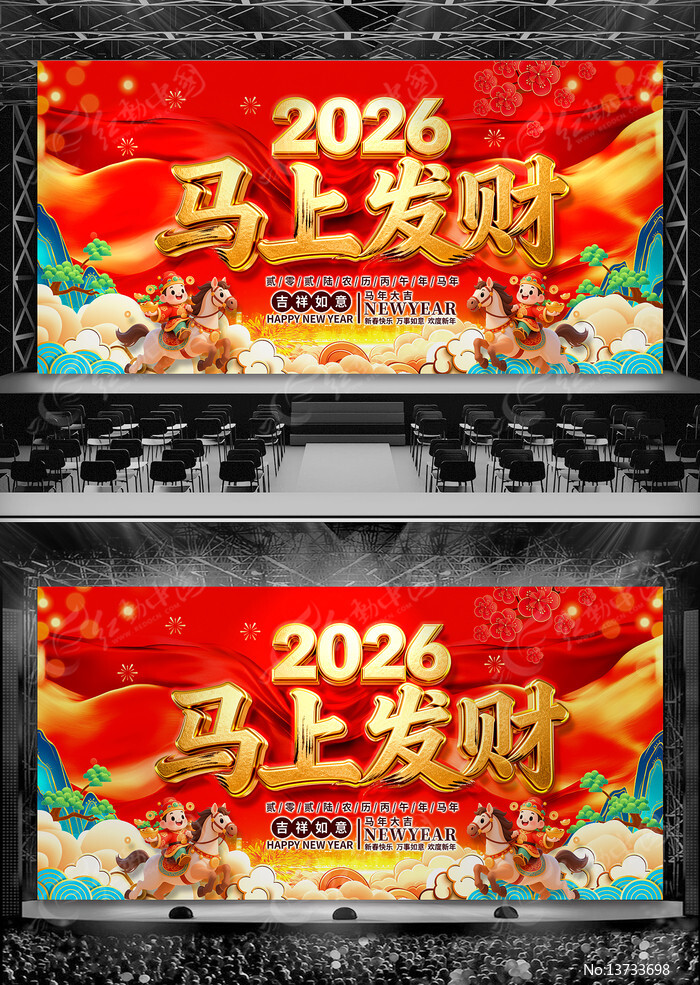 红动中国提供原创马上发财2026马年新年春节展板海报素材下载,作品以年会为主题而设计,可作为年会舞台背景,年终答谢会,团拜会酒会,颁奖典礼,公司年会等主题图片使用,马上发财2026马年新年春节展板海报素材,编号13733698,格式PSD,尺寸300x600毫米,大小222 MB,欢迎会员进行下载。