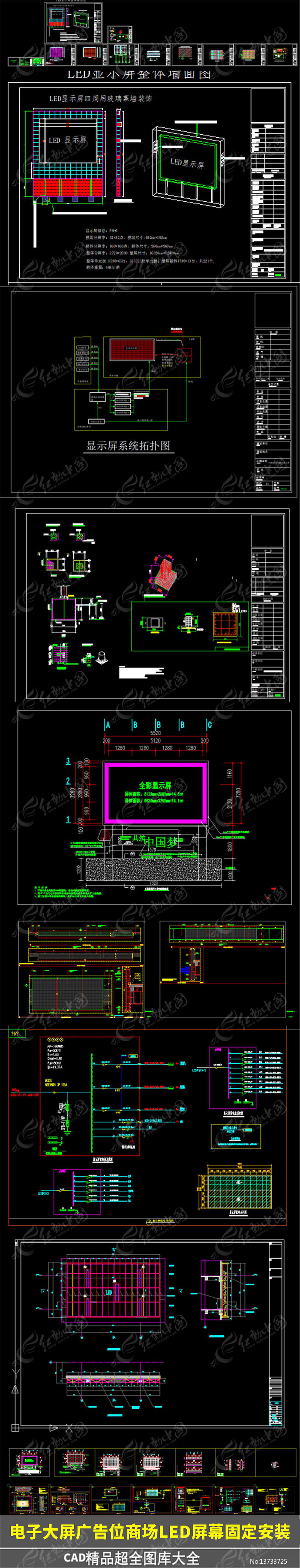 红动中国提供原创电子大屏CAD图集下载,作品以商场LED屏幕为主题而设计,可作为室外LED广告屏幕,固定安装构造,含系统控制图,商场LED屏幕,LED拼接屏等主题图片使用,电子大屏CAD图集编号13733725,格式CAD,大小9.76 MB,欢迎会员进行下载。