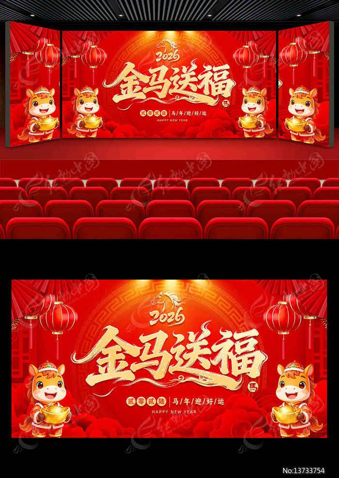 当前位置:设计网站>平面广告>展板>节日节气>2026金马送福晚会背景2026金马送福晚会背景