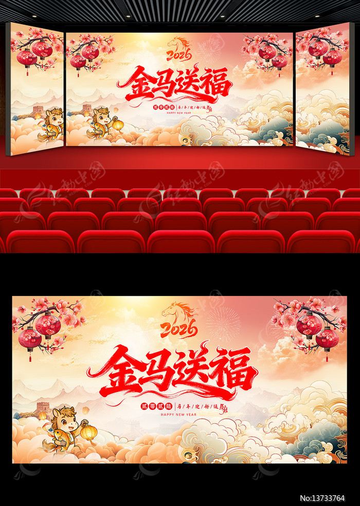 当前位置:设计网站>平面广告>展板>节日节气>国潮2026金马送福晚会背景国潮2026金马送福晚会背景