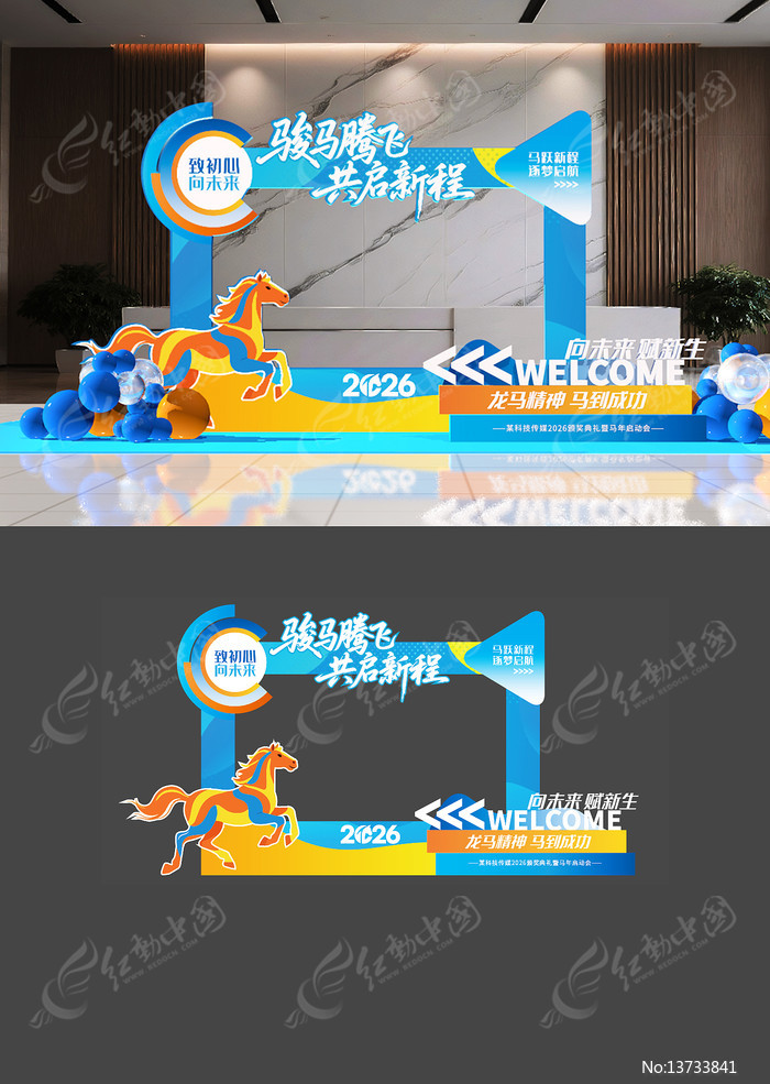 红动中国提供原创原创年会拍照框下载,作品以年会为主题而设计,可作为2026新年美陈,春节打卡点,春节拍照框,马年拍照框,年货节拱门等主题图片使用,原创年会拍照框,编号13733841,格式AI,尺寸500x200毫米,大小15.58 MB,欢迎会员进行下载。