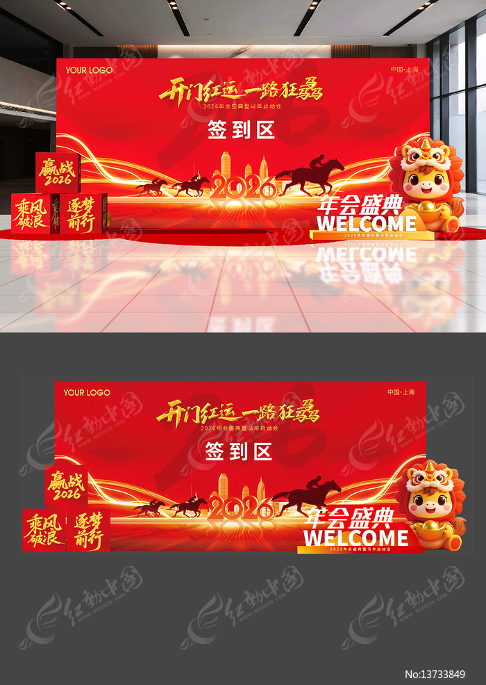 红动中国提供原创原创年会签到处下载,作品以年会为主题而设计,可作为春节打卡点,年会签到处,春节布置,春节美陈,美陈布置等主题图片使用,原创年会签到处,编号13733849,格式AI,尺寸500x200毫米,大小74.49 MB,欢迎会员进行下载。