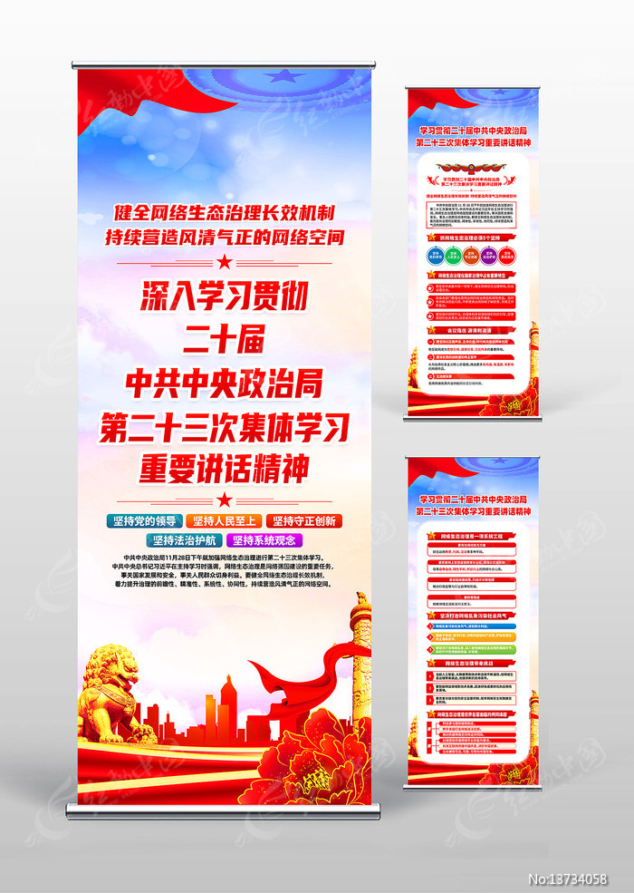 红动中国提供原创中共中央政治局第二十三次集体学习易拉宝下载,作品以第二十三次集体学习为主题而设计,可作为第二十三次集体学习,中共中央政治局,党建会议精神,学习会议精神,党建易拉宝等主题图片使用,中共中央政治局第二十三次集体学习易拉宝,编号13734058,格式PSD,尺寸800x2000毫米,大小46.82 MB,欢迎会员进行下载。