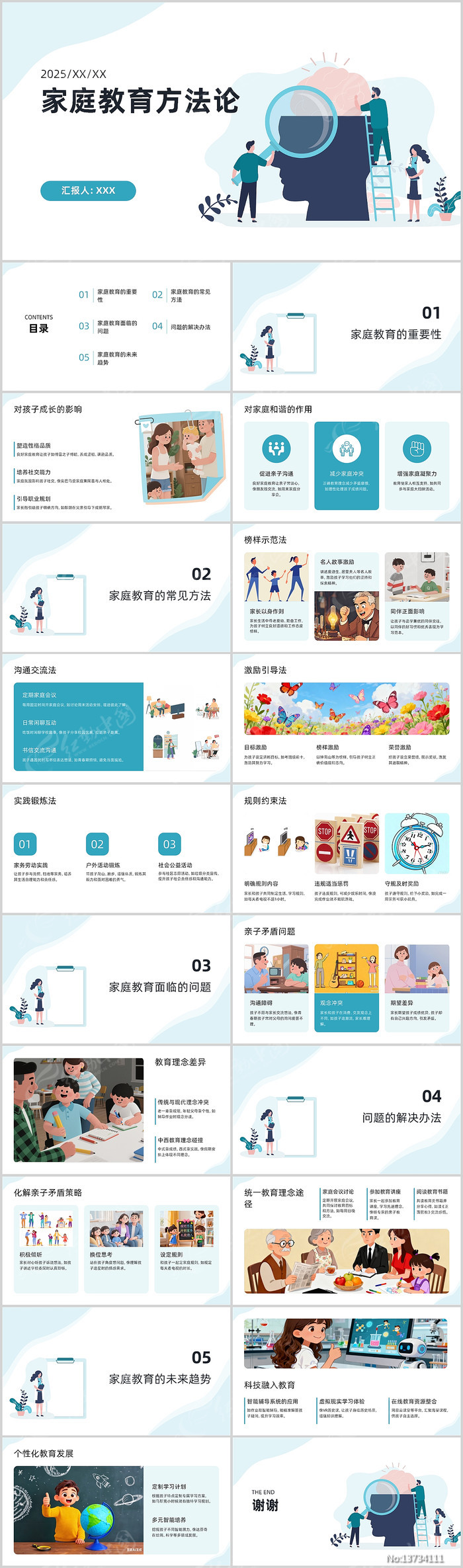红动中国提供原创插画风家庭教育方法论PPT模板下载,作品以家庭教育为主题而设计,可作为父母教育PPT,家庭教育PPT,蓝色卡通ppt,亲子沟通PPT,亲子教育PPT等主题PPT使用,插画风家庭教育方法论PPT模板编号13734111,格式pptx,大小34.8 MB,欢迎会员进行下载。