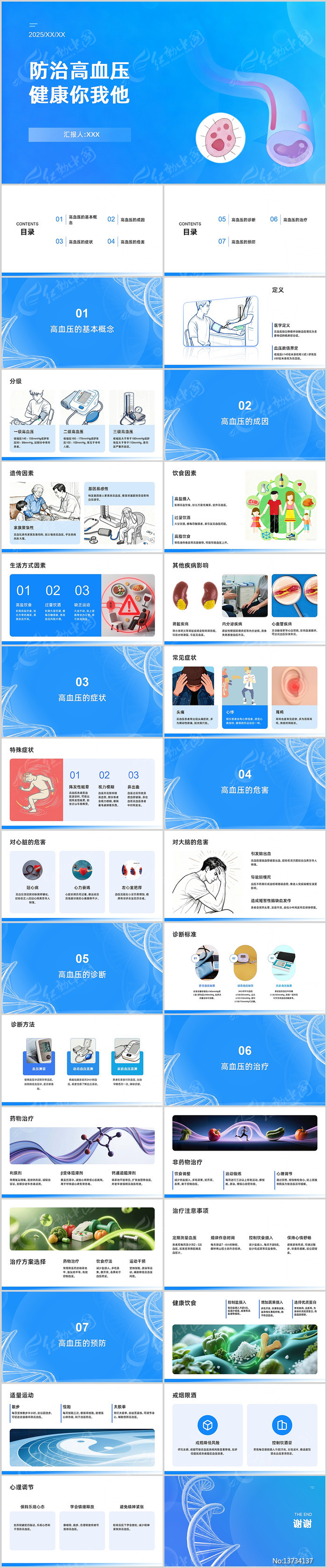 红动中国提供原创蓝色简约防治高血压健康PPT模板下载,作品以高血压预防为主题而设计,可作为高血压知识PPT健康教育PPT,高血压预防PPT,中老年健康PPT,医护PPT,医疗ppt等主题PPT使用,蓝色简约防治高血压健康PPT模板编号13734137,格式pptx,大小55.3 MB,欢迎会员进行下载。