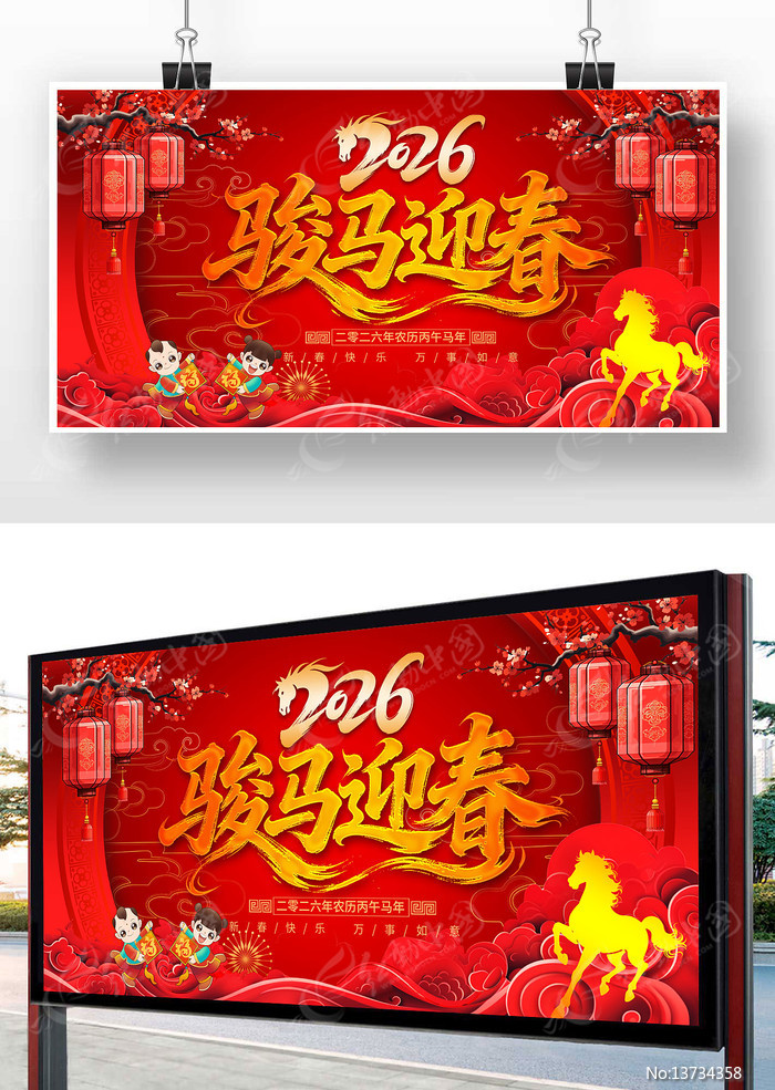 红动中国提供原创2026马年骏马迎春展板下载,作品以2026年为主题而设计,可作为马年表彰大会,2026年春节,2026年展板,2026马年,2026新年等主题图片使用,2026马年骏马迎春展板,编号13734358,格式PSD,尺寸600x300毫米,大小98.67 MB,欢迎会员进行下载。