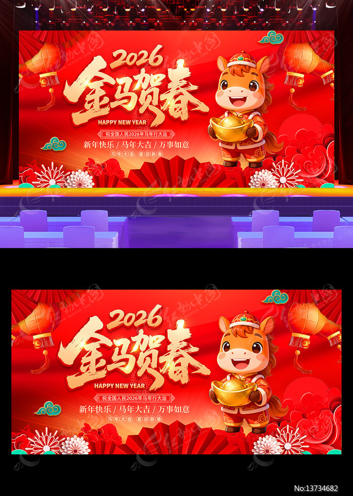 当前位置:设计网站>平面广告>展板>节日节气>2026年金马贺春新年晚会舞台背景展板2026年金马贺春新年晚会舞台背景展板