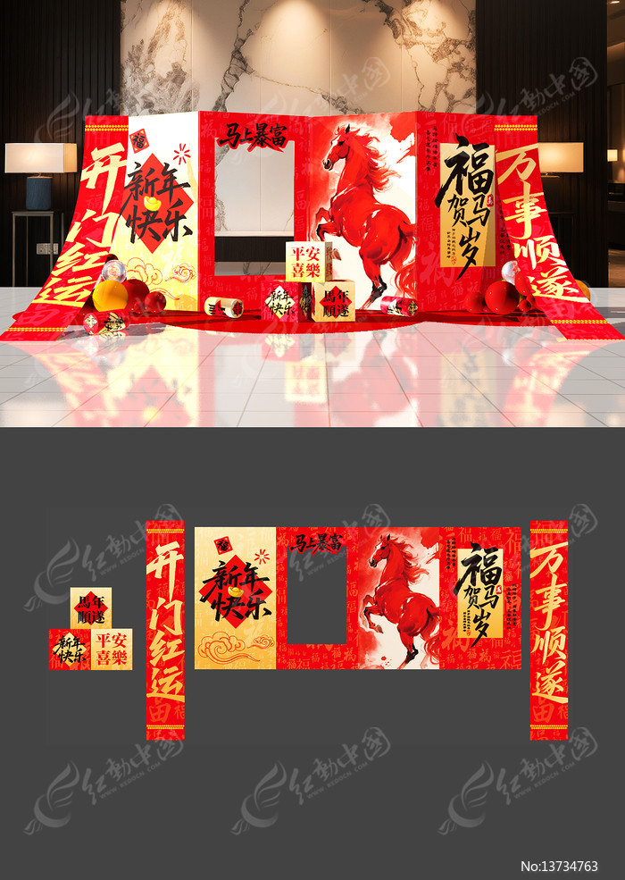 红动中国提供原创原创新年美陈设计下载,作品以企业年会为主题而设计,可作为春节打卡点,春节拱门,春节美陈,美陈布置,年会美陈等主题图片使用,原创新年美陈设计,编号13734763,格式AI,尺寸500x200毫米,大小117.74 MB,欢迎会员进行下载。
