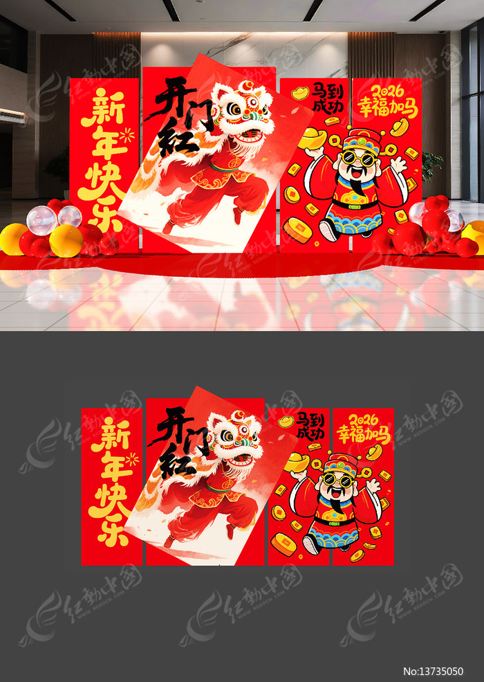 红动中国提供原创原创2026开门红春节美陈打卡点下载,作品以新年为主题而设计,可作为春节拍照框,春节PD点,春节布置,春节美陈,企业年会等主题图片使用,原创2026开门红春节美陈打卡点,编号13735050,格式AI,尺寸500x200毫米,大小109.19 MB,欢迎会员进行下载。