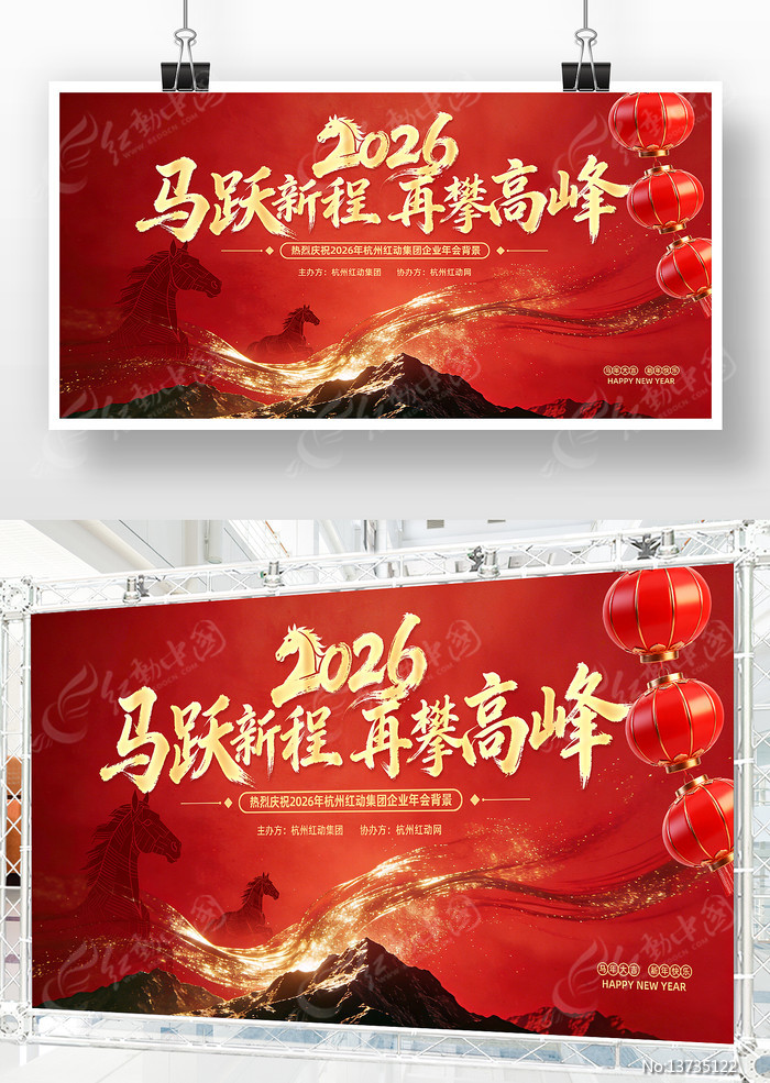 红动中国提供原创红色创意2026马年企业年会舞台背景展板下载,作品以马年为主题而设计,可作为2026年会背景,马年活动背景,马年年会背景,马年舞台背景,年会舞台背景等主题图片使用,红色创意2026马年企业年会舞台背景展板,编号13735122,格式PSD,尺寸300x600毫米,大小73.07 MB,欢迎会员进行下载。