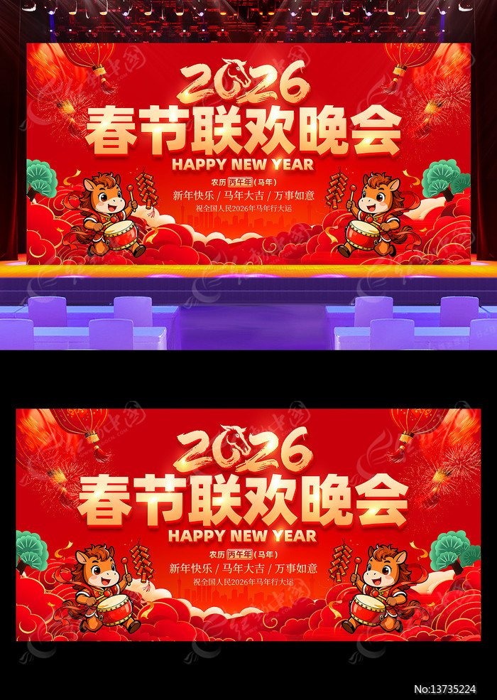 当前位置:设计网站>平面广告>展板>节日节气>2026马年春节联欢晚会舞台背景展板2026马年春节联欢晚会舞台背景展板