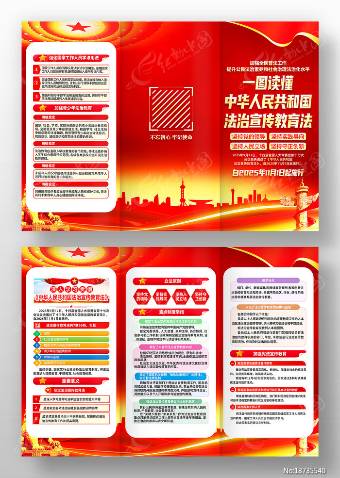 红动中国提供原创中华人民共和国法治宣传教育法宣传三折页下载,作品以法治宣传教育法为主题而设计,可作为中华人民共和国法治宣传教育法,法治宣传教育法,法治宣传教育,党建三折页,法治教育法等主题图片使用,中华人民共和国法治宣传教育法宣传三折页,编号13735540,格式PSD,尺寸210x297毫米,大小17.12 MB,欢迎会员进行下载。