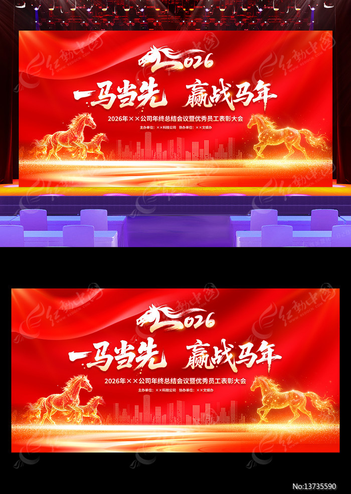 当前位置:设计网站>平面广告>展板>节日节气>红色2026年马年企业年会舞台背景展板红色2026年马年企业年会舞台背景展板