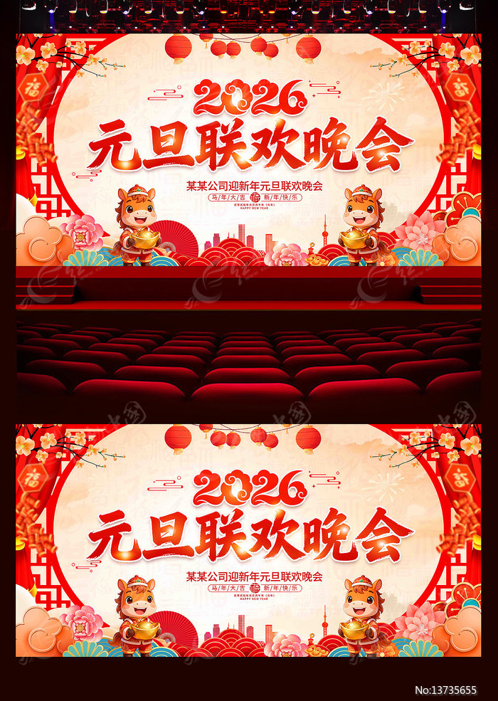 红动中国提供原创2026元旦联欢晚会元旦晚会舞台背景展板下载,作品以元旦晚会为主题而设计,可作为2026马年,2026晚会,春节背景,春节海报,春节晚会等主题图片使用,2026元旦联欢晚会元旦晚会舞台背景展板,编号13735655,格式PSD,尺寸600x300毫米,大小101.62 MB,欢迎会员进行下载。