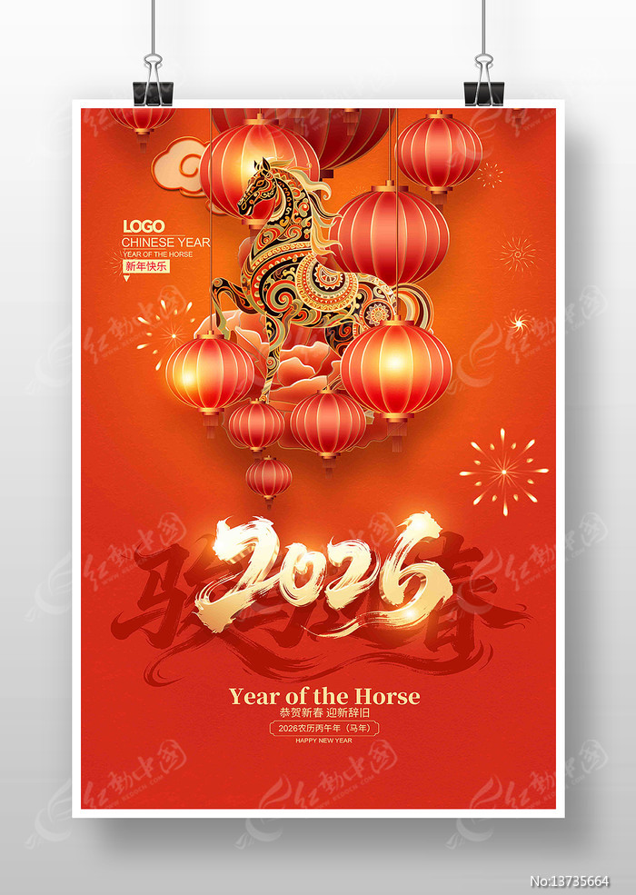 红动中国提供原创骏马迎春2026年马年海报设计下载,作品以马年为主题而设计,可作为2026马年,2026晚会,春节背景,春节海报,春节晚会等主题图片使用,骏马迎春2026年马年海报设计,编号13735664,格式PSD,尺寸300x450毫米,大小43.29 MB,欢迎会员进行下载。
