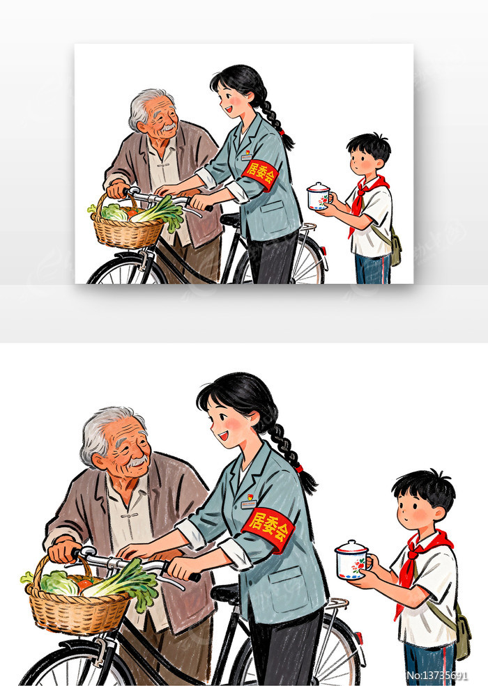 当前位置:素材网站>免抠元素>卡通手绘>党建插画之心系百姓