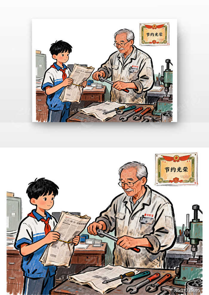 当前位置:素材网站>免抠元素>卡通手绘>党建插画之节约光荣