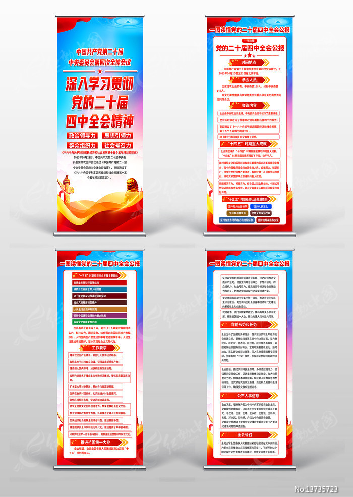 红动中国提供原创学习贯彻二十届四中全会精神易拉宝展架下载,作品以学习二十届四中全会为主题而设计,可作为学习二十届四中全会,二十届四中全会,四中全会公报,四中全会精神,党建会议等主题图片使用,学习贯彻二十届四中全会精神易拉宝展架,编号13735723,格式PSD,尺寸800x1800毫米,大小55.52 MB,欢迎会员进行下载。