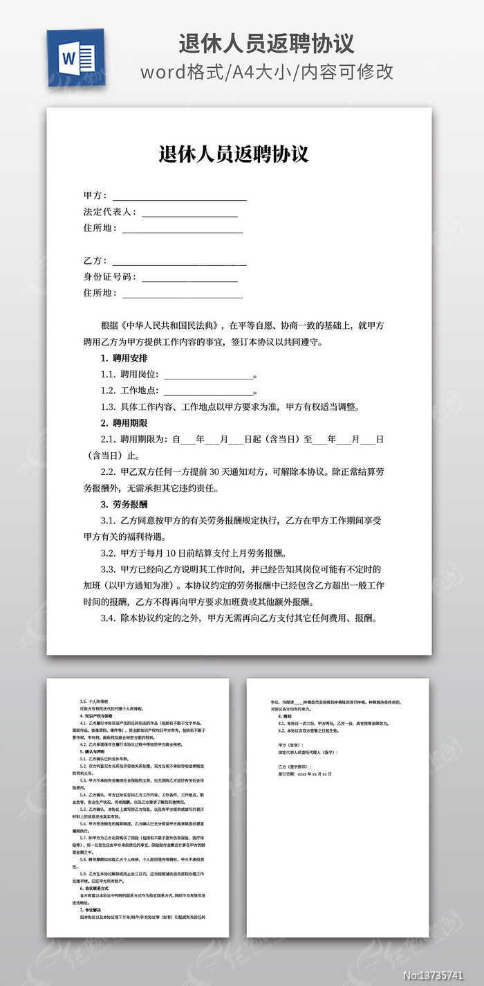 红动中国提供原创退休人员返聘协议下载,该作品还可作为退休人员返聘协议等范文模板使用,退休人员返聘协议编号13735741,大小,欢迎会员进行下载。