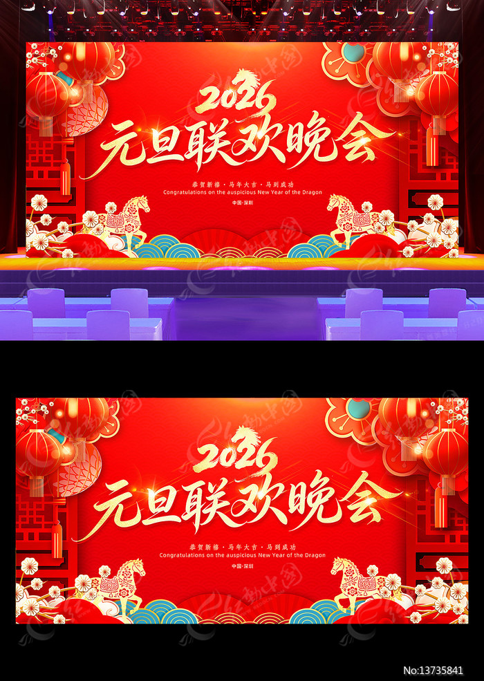 红动中国提供原创马年2026元旦联欢晚会舞台背景展板图片下载,作品以元旦为主题而设计,可作为2026年元旦节,2026年海报,2026年元旦,元旦节背景,2026元旦等主题图片使用,马年2026元旦联欢晚会舞台背景展板图片,编号13735841,格式PSD,尺寸600x300毫米,大小83.91 MB,欢迎会员进行下载。