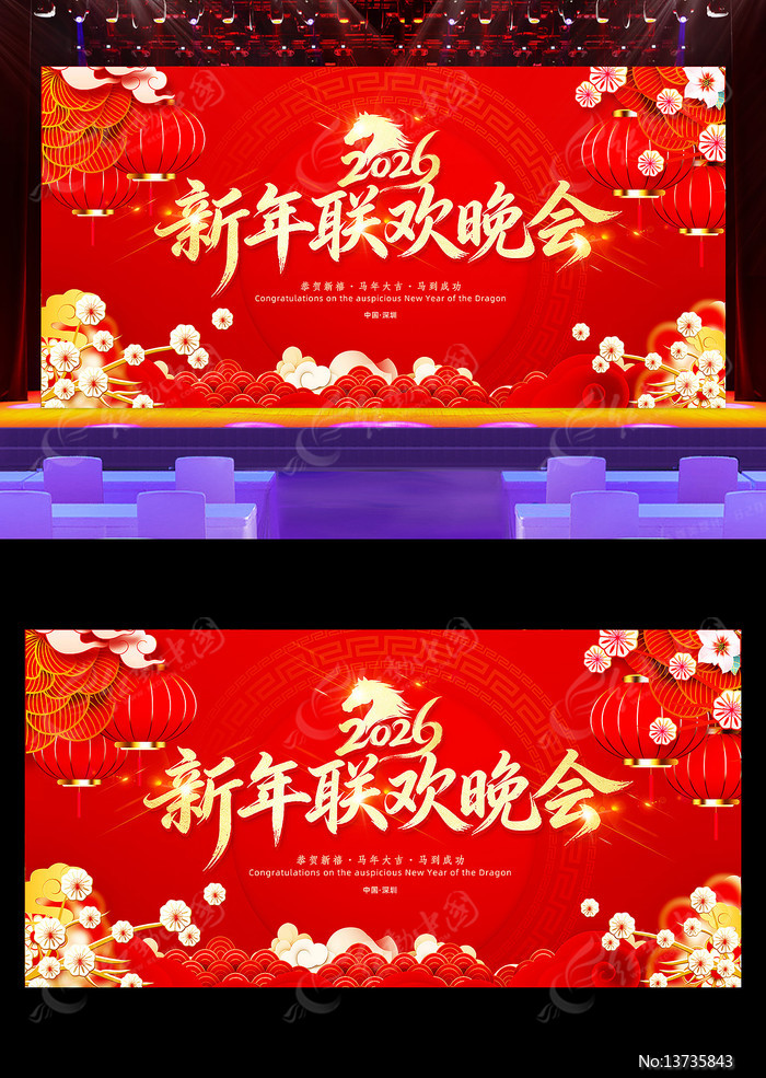 当前位置:设计网站>平面广告>展板>节日节气>2026马年元旦联欢晚会舞台背景展板图片2026马年元旦联欢晚会舞台背景展板图片