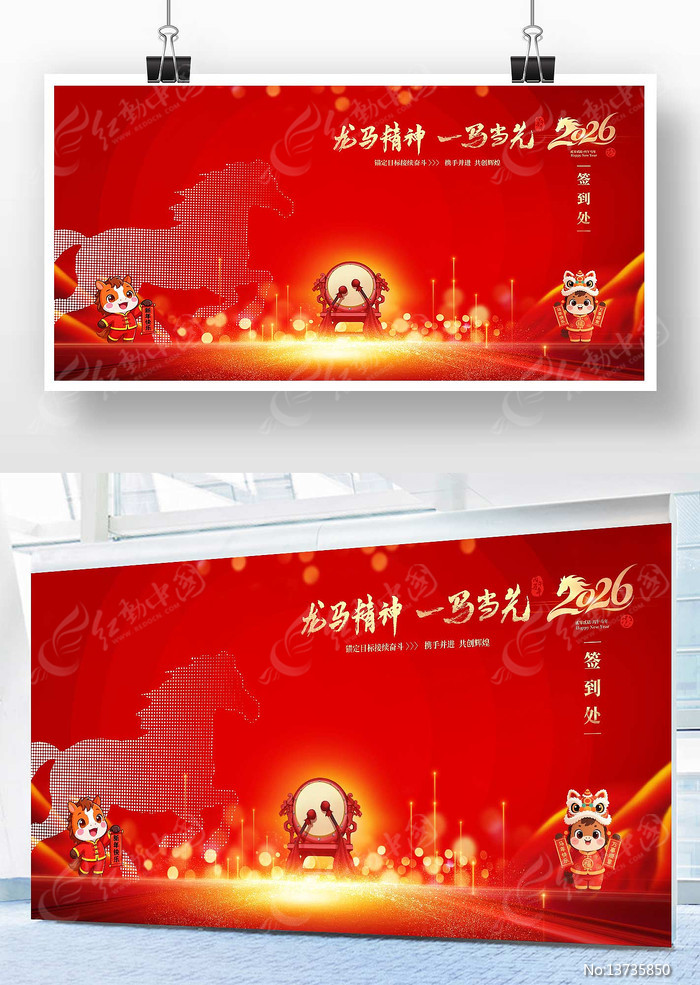 红动中国提供原创一马当先2026马年年会签到处背景板展板下载,作品以马年签到处背景为主题而设计,可作为2026年会签到处,马年签到处背景,年会签到处海报,年会签到处展板,企业年会签到处等主题图片使用,一马当先2026马年年会签到处背景板展板,编号13735850,格式PSD,尺寸500x260毫米,大小82.01 MB,欢迎会员进行下载。