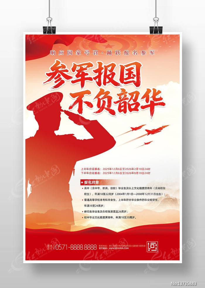 红动中国提供原创参军报国不负韶华部队参军征兵党建海报下载,作品以征兵宣传为主题而设计,可作为部队宣传海报,部队宣传文化,军队征兵海报,入伍宣传海报,征兵宣传海报等主题图片使用,参军报国不负韶华部队参军征兵党建海报,编号13735883,格式PSD,尺寸450x300毫米,大小84 MB,欢迎会员进行下载。