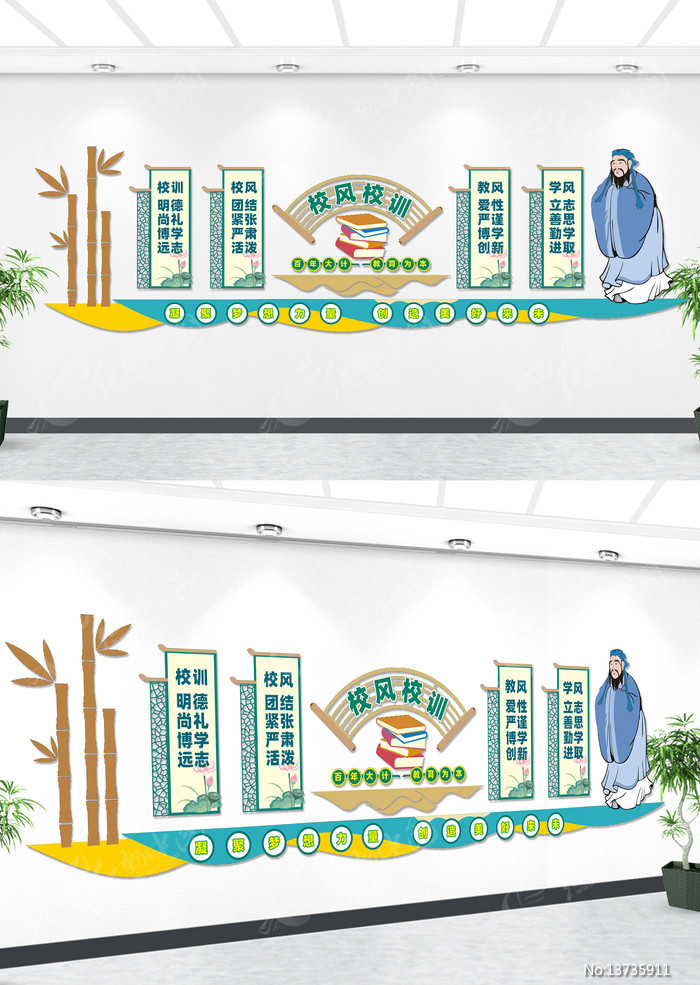 当前位置:设计网站>平面广告>文化墙>校园文化墙>三风一训校风校训文化墙三风一训校风校训文化墙