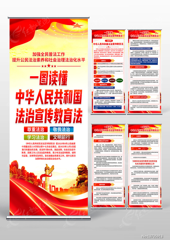 红动中国提供原创解读中华人民共和国法治宣传教育法易拉宝下载,作品以法治宣传教育为主题而设计,可作为中华人民共和国法治宣传教育法,法治宣传教育法,法治教育展板,法治宣传教育,党建宣传等主题图片使用,解读中华人民共和国法治宣传教育法易拉宝,编号13735913,格式PSD,尺寸800x1800毫米,大小137.06 MB,欢迎会员进行下载。