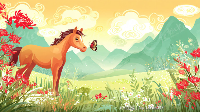当前位置:首页>AI图库>风景图片>其他风景>国潮风手绘山脉中马和蝴蝶水彩插画国潮风手绘山脉中马和蝴蝶水彩插画