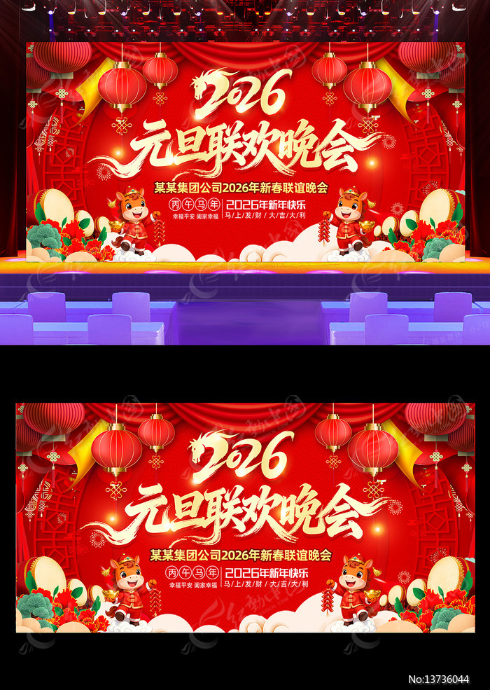红动中国提供原创2026元旦联欢晚会新年晚会舞台背景下载,作品以新年为主题而设计,可作为2026春节背景,2026春节晚会,2026马年背景,2026马年晚会,2026新年背景等主题图片使用,2026元旦联欢晚会新年晚会舞台背景,编号13736044,格式PSD,尺寸600x300毫米,大小82.95 MB,欢迎会员进行下载。
